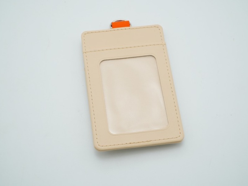 IDカードケース:ストラップ(オレンジ)+本体(アイボリ-)